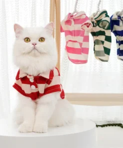 The casual polo design with button closure adds charm while ensuring easy on and off wear. Whether you have a Chihuahua, Yorkshire Terrier, or small cat, this shirt provides a snug but gentle fit. The striped pattern gives your pet a fashionable flair during walks, park visits, or photo ops.